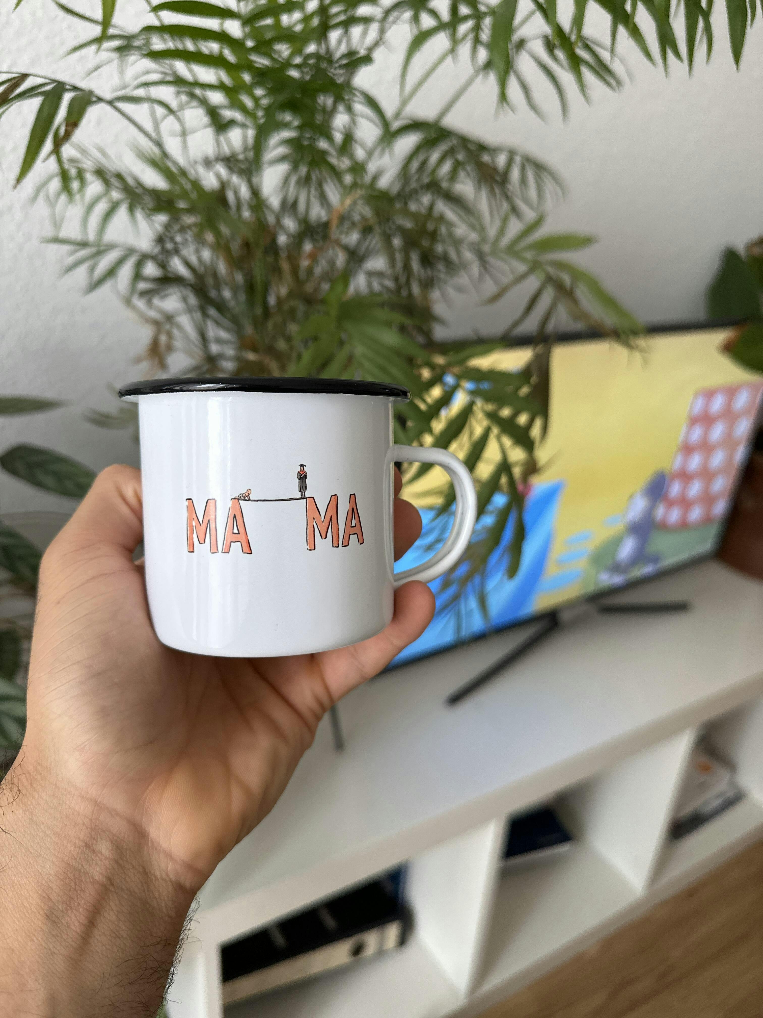 Wie wäre es mit einer "Mama"-Tasse aus hochwertiger Keramik mit einem Fassungsvermögen von 300 ml, die spülmaschinen- und mikrowellenfest ist und einen stabilen Henkel hat.